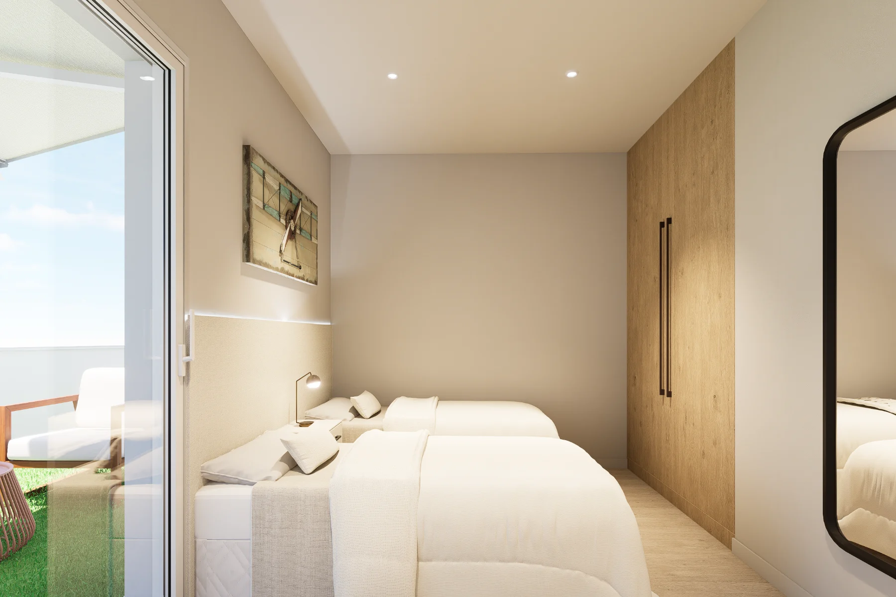 * Las imágenes y calidades mostradas son orientativas y no contractuales, pudiendo sufrir variaciones técnicas, de disponibilidad o modificaciones personalizadas por el cliente. La vivienda se entrega con la carpintería interior, armarios, muebles de baño y cocina amueblada. Información conforme al R.D. 515/1989.